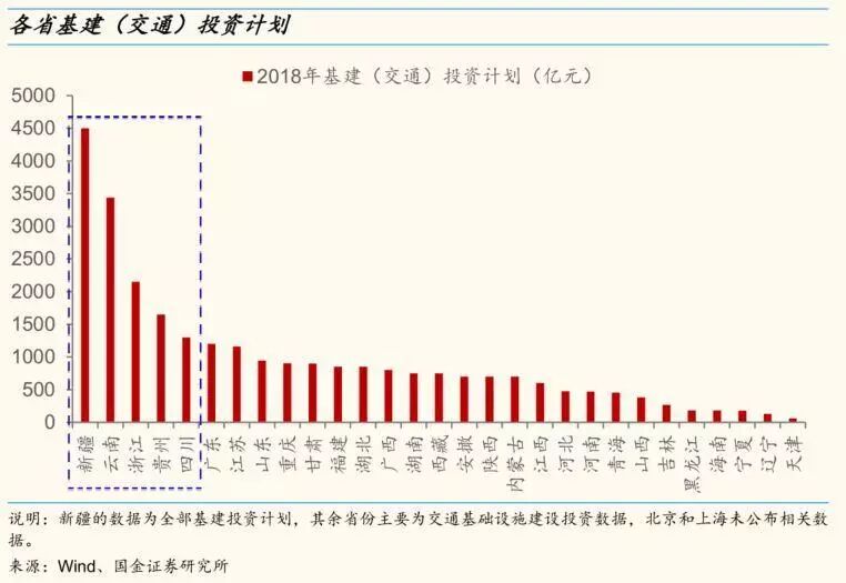 《意见》在加快补齐贫困地区基础设施短板方面提出了以下要求: 1 加快实施交通扶贫行动 在贫困地区尽快实现具备条件的乡镇、建制村通硬化路。 加快贫困地区农村公路安全生命防护工程建设,基本完成乡道及以上行政等级公路安全隐患治理。推进窄路基路面农村公路合理加宽改造和危桥改造。 改造建设一批贫困乡村旅游路、产业路、资源路,优先改善自然人文、少数民族特色村寨和风情小镇等旅游景点景区交通设施。 推进国家铁路网、国家高速公路网连接贫困地区项目建设,加快贫困地区普通国省道改造和支线机场、通用机场、内河航道建设。 2 大力推进水利扶贫行动 加快实施贫困地区农村饮水安全巩固提升工程,落实工程建设和管护责任,强化水源保护和水质保障,因地制宜加强供水工程建设与改造,显著提高农村集中供水率、自来水普及率、供水保证率和水质达标率,到2020年全面解决贫困人口饮水安全问题。 加快贫困地区大中型灌区续建配套与节水改造、小型农田水利工程建设,实现灌溉水源、灌排骨干工程与田间工程协调配套。 切实加强贫困地区防洪工程建设和运行管理。继续推进贫困地区水土保持和水生态建设工程。 3 加强电力基础设施建设 实施贫困地区农网改造升级,加强电力基础设施建设,建立贫困地区电力普遍服务监测评价体系,引导电网企业做好贫困地区农村电力建设管理和供电服务,到2020年实现大电网延伸覆盖至全部县城。大力推进贫困地区农村可再生能源开发利用。 加大基础设施领域补短板的力度是当前深化供给侧结构性改革的重点任务。今年以来,我国基础设施建设投资重点向西部倾斜。 今年,全国预计新增高速公路5000公里,新改建农村公路20万公里,新增5000个建制村通硬化路。 新增投资主要向西藏、四省藏区、南疆四地州和四川凉山州、云南怒江州、甘肃临夏州等深度贫困的“三区三州”倾斜。 中央财政下达的全年266亿元农村危房改造补助资金,也将“三区三州”的35.4万户重点对象危房改造任务全部提前安排,优先解决好这些地区农村居民的住房安全问题。 从各地公布的2018年基建投资计划来看,新疆、云南、贵州、四川、甘肃等西部地区投资规模较大,规模分别为4500亿、3440亿、1650亿、1300亿。 来源:人民网、央视网、国金证券研究所