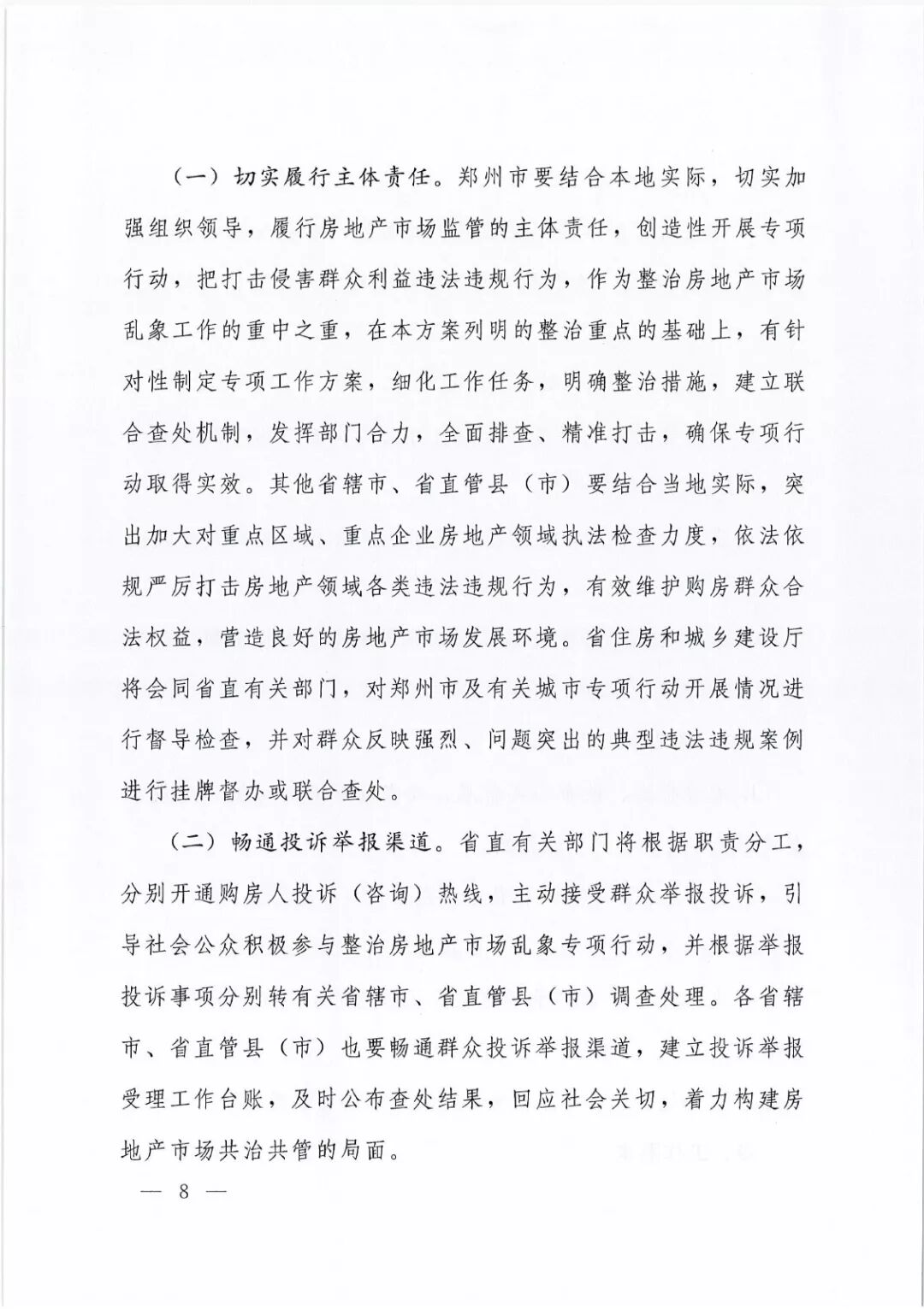 8月21日,河南省住建厅、省委宣传部、省公安厅、省司法厅、国家税务总局河南省税务局、省工商局、省发改委、河南银监局、河南保监局9部门联合印发《河南省打击侵害群众利益违法违规行为治理房地产市场乱象专项行动实施方案》,打击投资炒房行为和房地产“黑中介”,治理房地产开发企业违法违规行为和虚假房地产广告,进一步整顿和规范房地产市场秩序,努力创造良好的房地产市场发展环境。